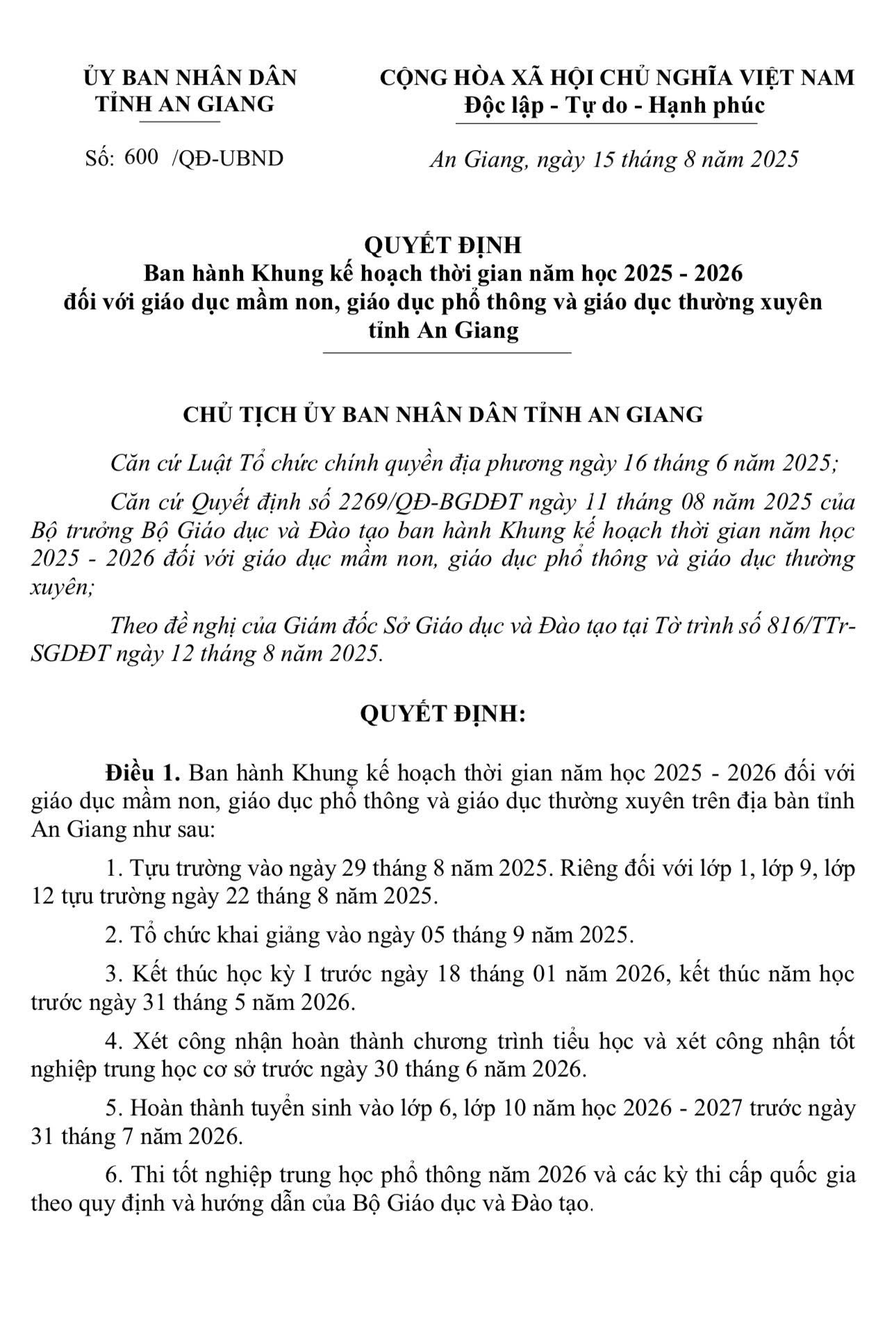 - Học sinh khối 10, 11 tựu trường ngày 29/08/2025 (7 giờ sáng).
